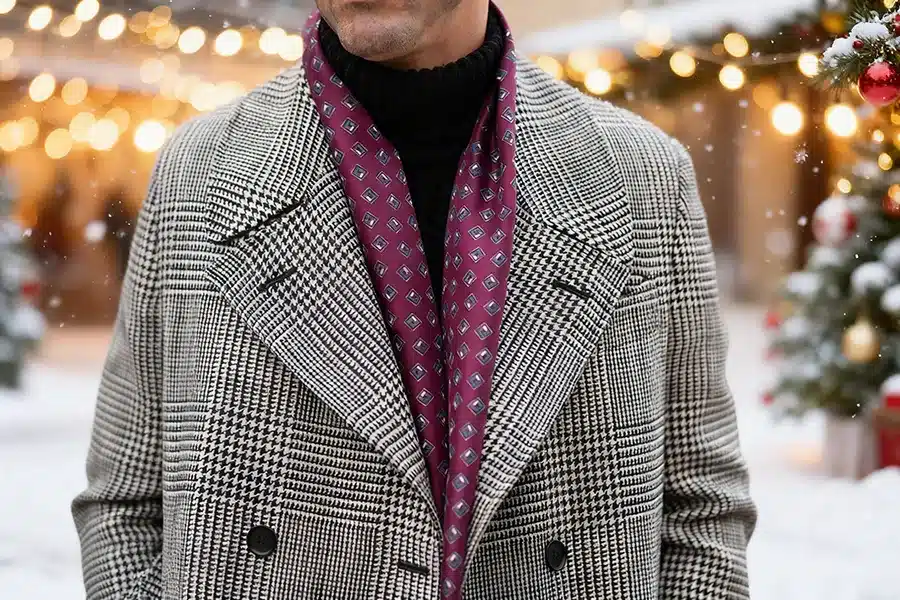 This is why luxury silk ties and scarves remain essential during Christmas and New Year’s celebrations. They offer comfort without compromising elegance and add visual depth to tailoring, knitwear and outerwear alike.