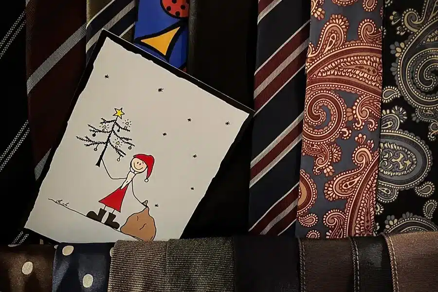 The designs draw inspiration from classic menswear traditions, archival patterns and iconic style eras, subtly reinterpreted for today’s wardrobe. Whether worn with a tailored suit for a formal holiday dinner or paired with a blazer for a more relaxed celebration, these luxury silk ties bring balance, personality and quiet confidence to the look.