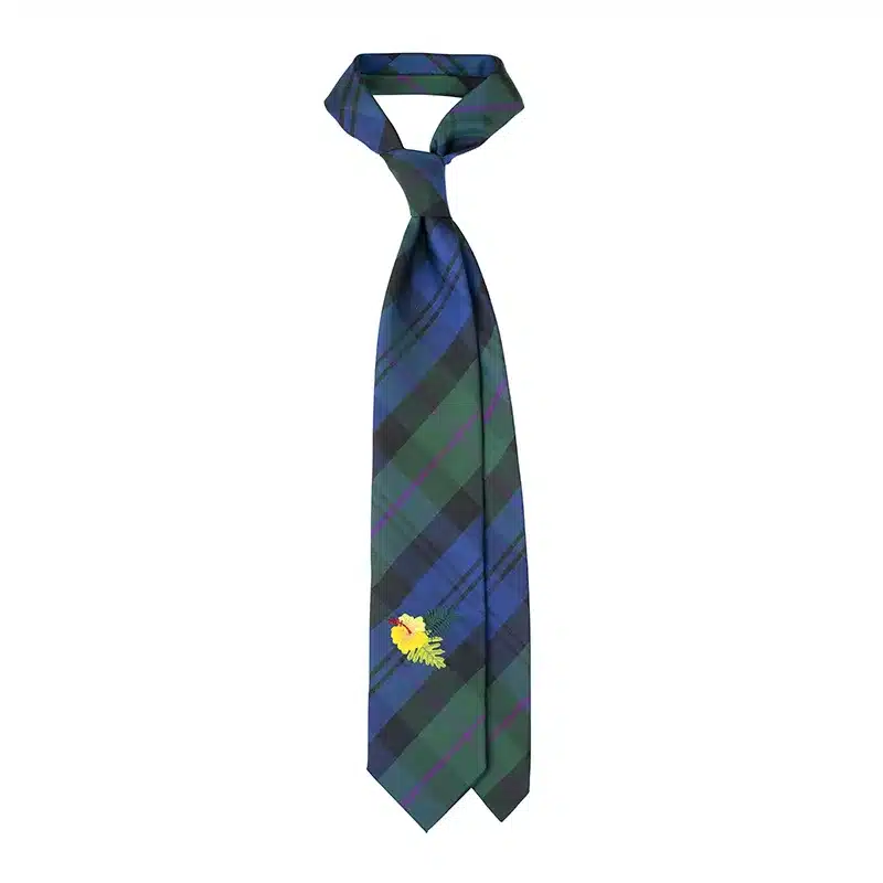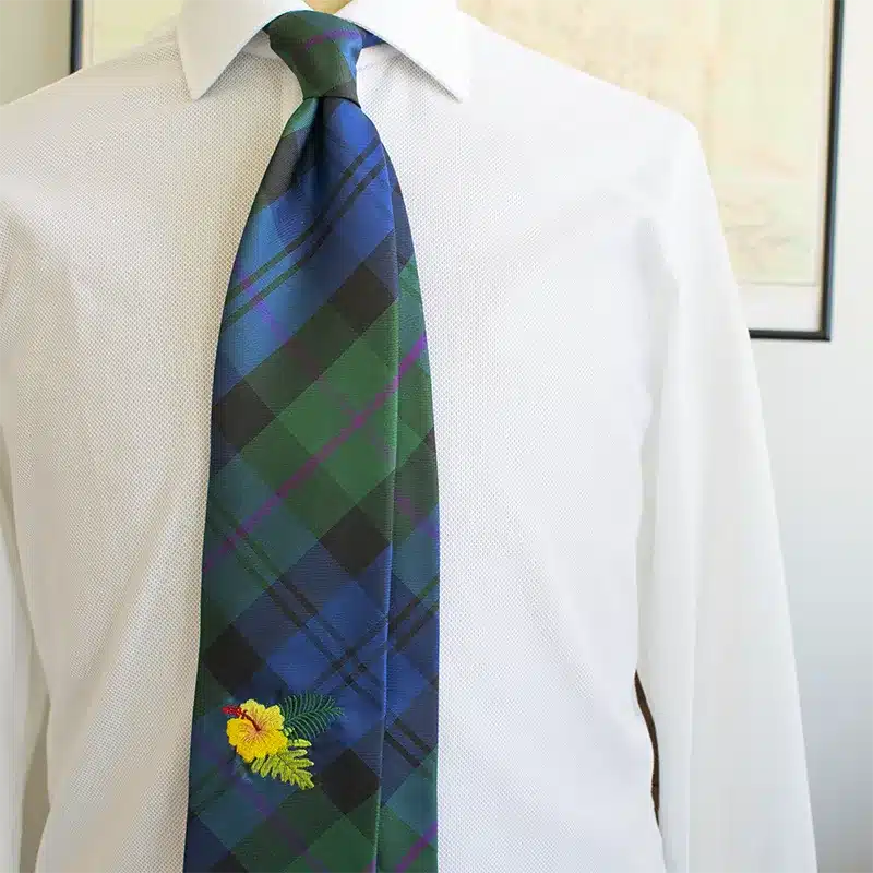 Refined, elegant, with a tropical twist. The British check silk tie with Hawaiian flower embroidery brings together the rigor of tradition and the lightness of exotic inspiration. The check pattern in deep, quintessentially British tones becomes the canvas for a delicate yet vibrant bloom, a symbol of vitality and timeless beauty.
