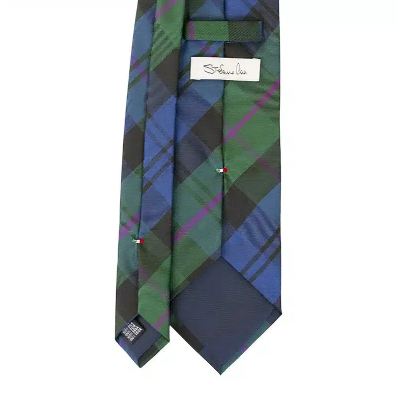 Bold, distinctive, unmistakably Stefano Cau. The British check silk tie with swordfish embroidery is a celebration of strength and elegance, where classic sartorial tradition meets a touch of maritime flair. The deep shades of navy and green, enhanced by refined check patterns, create a sophisticated backdrop for the finely embroidered swordfish – a symbol of power and dynamism.This tie embodies versatility and personality. Perfect when paired with a navy or grey suit, it adds a subtle yet impactful detail that makes a statement without excess. The embroidery in the tip is an unexpected feature that transforms a traditional British check into something uniquely contemporary.Each tie is meticulously handcrafted in Como, Italy, with the finest silk yarns and time-honored techniques. Presented in the classic 148 x 9 cm size with regular tipping, it reflects the essence of Italian sartorial excellence and refinement.