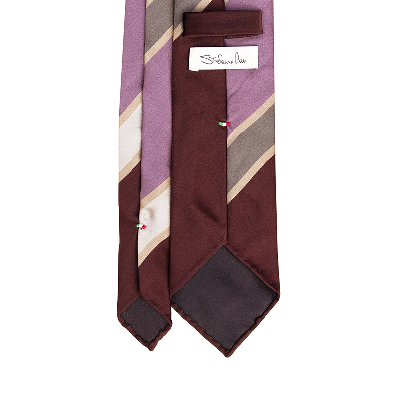 PANEL DOUBLE STRIPE SATIN TIE – BURGUNDY/PURPLE