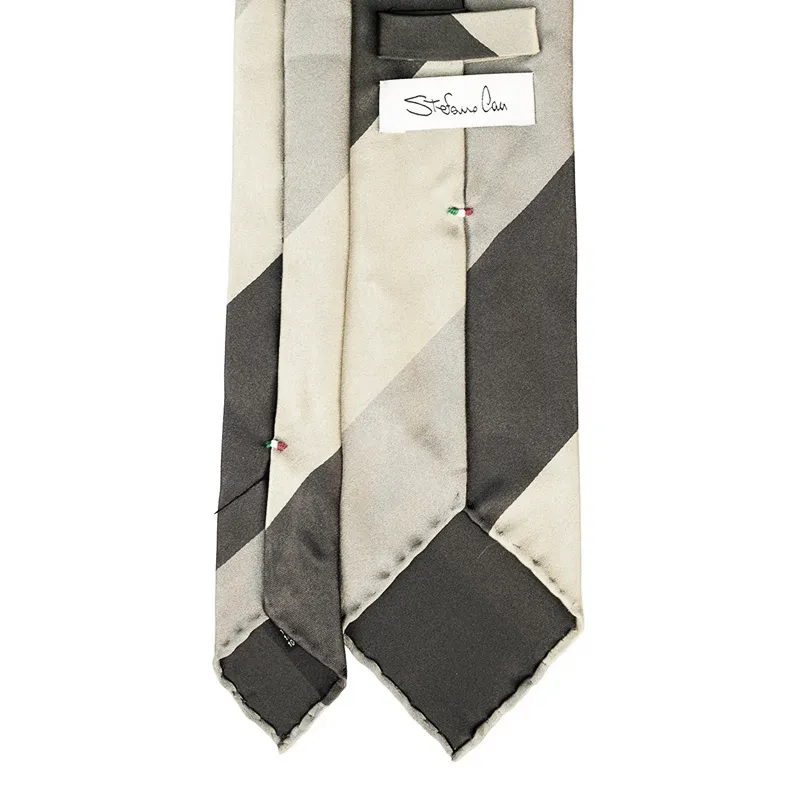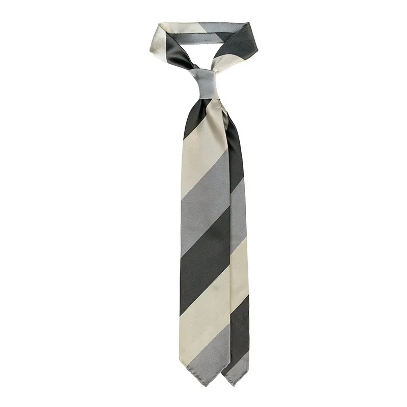 Block Stripe Silk Satin Tie – Grey/Silver/Ivory